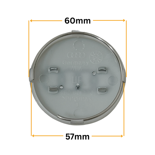 Set 4 Capace Jante Audi – 61mm, Negru cu Ramă Argintie